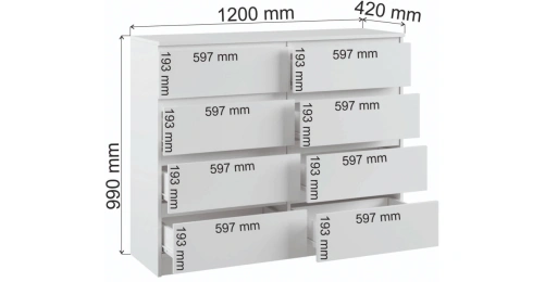 Комод Мадера, с восьмью ящиками, лдсп, белый