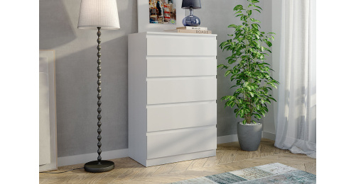 Комод “Морвик” с пятью ящиками - это идеальный выбор для тех, кто ценит комфорт, стиль и функциональность в интерьере своего дома или офиса. Выполненный в классическом белом цвете, он станет ярким акцентом в любом помещении и гармонично впишется в любой интерьер.
