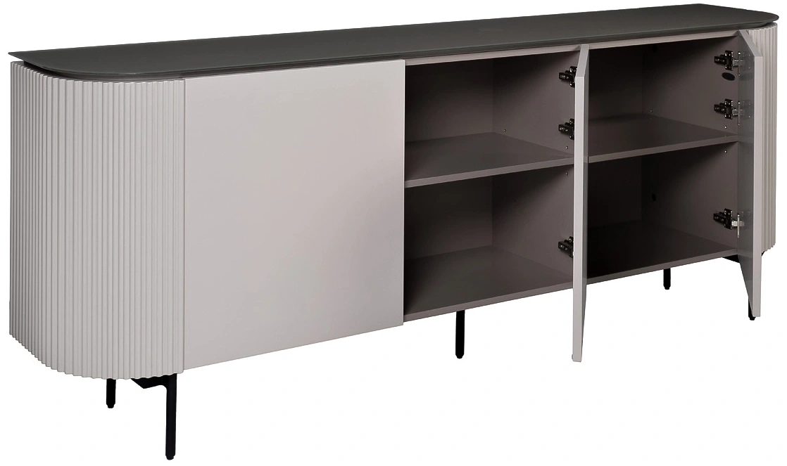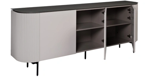 Дизайнерский комод SCALA светлого серо-бежевого оттенка из материалов премиального качества украсит собой любую современную гостиную, спальню, кабинет. Функционал этой модели гораздо шире, чем просто хранение вещей. Он выполняет роль эффектного акцента в интерьере, а его поверхность становится подставкой для ваз, кашпо, фоторамок, декора и прочих мелочей. Комод с дверцами органично вписывается в современные интерьеры жилых квартир и рабочих кабинетов. С ним можно играть на контрастах или оформлять пространство в монохроме.