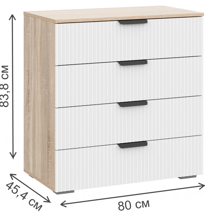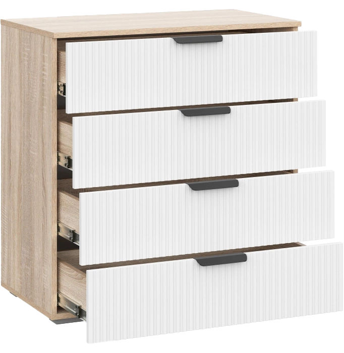 Комод Стокгольм, с четырьмя ящиками, дуб сонома / line софт пломбир