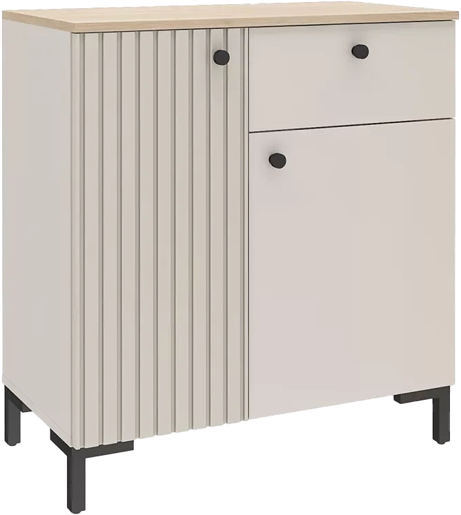 корпуса закромлены кромками ПВХ и ABS. Фасады изготовлены из 19 мм МДФ плиты цвет, укрытой пленкой ПВХ с эффектом Soft Touch.