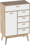 Высокий комод "Калгари" – это продуманная система хранения для прихожей, которая поможет избавиться от беспорядка. Закрытое отделение с двумя полками идеально подходит для хранения уличной и домашней обуви. Четыре выдвижных ящика предоставляют достаточно места для множества мелочей и аксессуаров, таких как обувь, зонты, перчатки, ключи и многое другое.