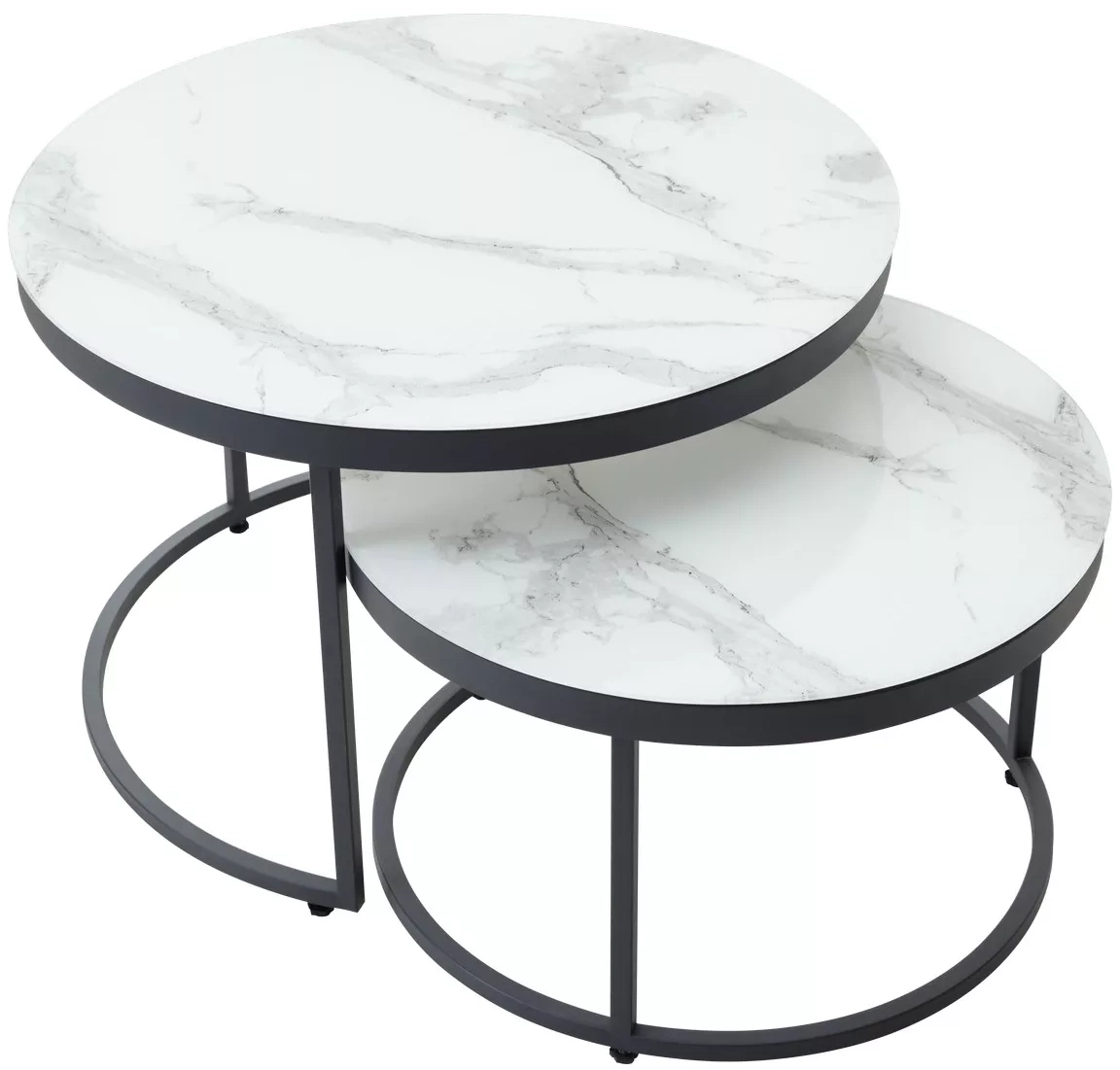 Комплект журнальных столиков Эрвин белый мрамор, стекло/ графит