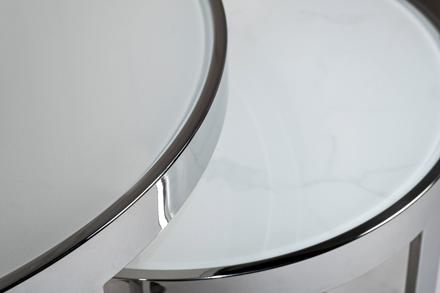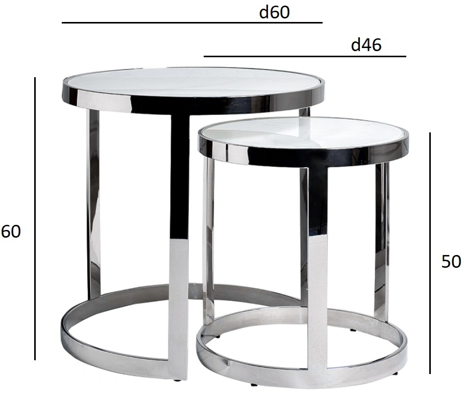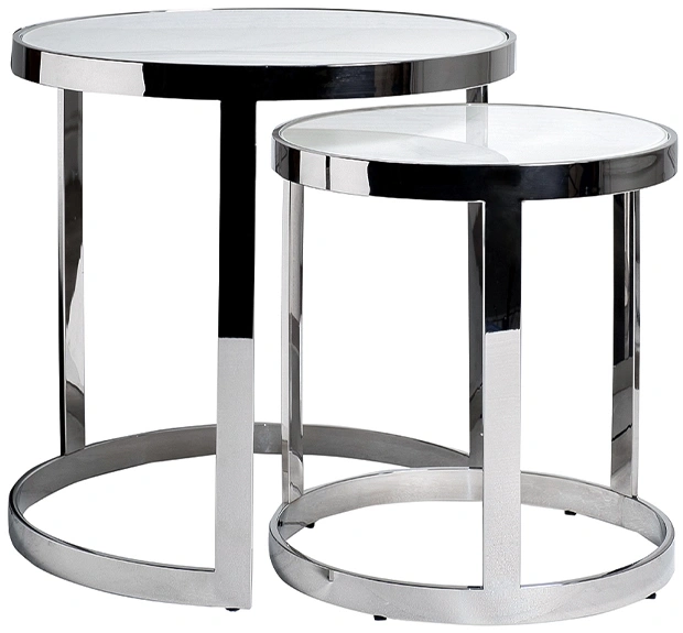 Одним из последних трендов в дизайне интерьера является набор журнальных столиков, изготовленных из нержавеющей стали и стекла, они имеют особенный и своеобразный дизайн. Являются предметом роскоши и комфорта. В набор входит два журнальных столика, которые отличаются между собой по форме и размеру, имеют простую конструкцию. Эти изысканные изделия станут украшением гостиной, столовой, прихожей, комнаты отдыха в офисах. Несмотря на то что столешница имеет круглую форму и сделана из стекла, обладает повышенной прочностью и долговечностью. Комплект журнальных столиков идеально впишется в помещения различных стилистических направлений. Будут всегда притягивать к себе внимание и станут изюминкой интерьера. Толщина столешниц - 8мм.