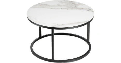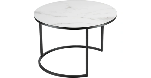 Комплект журнальных столов Плумерия, стекло, белый мрамор, каркас черный
