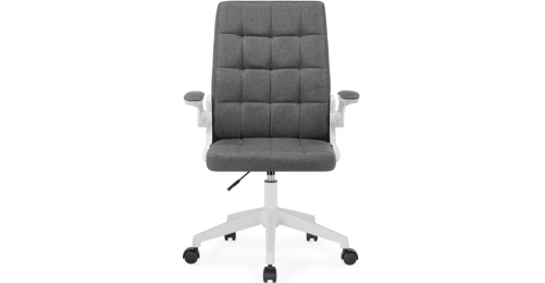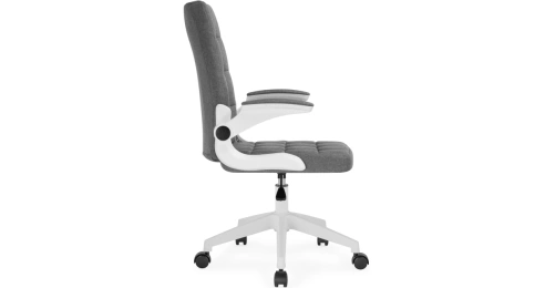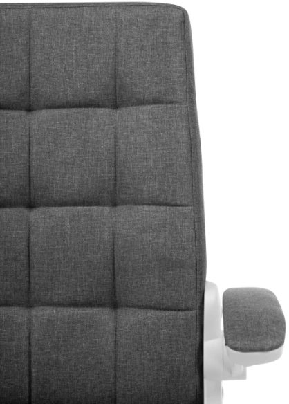 Элегантное сочетание белой пластиковой основы и серой тканевой обивки создает лаконичный дизайн, который легко впишется в любой интерьер. Регулируемая высота сиденья (44–52 см) и удобные подлокотники (64–72 см) обеспечивают правильную посадку.