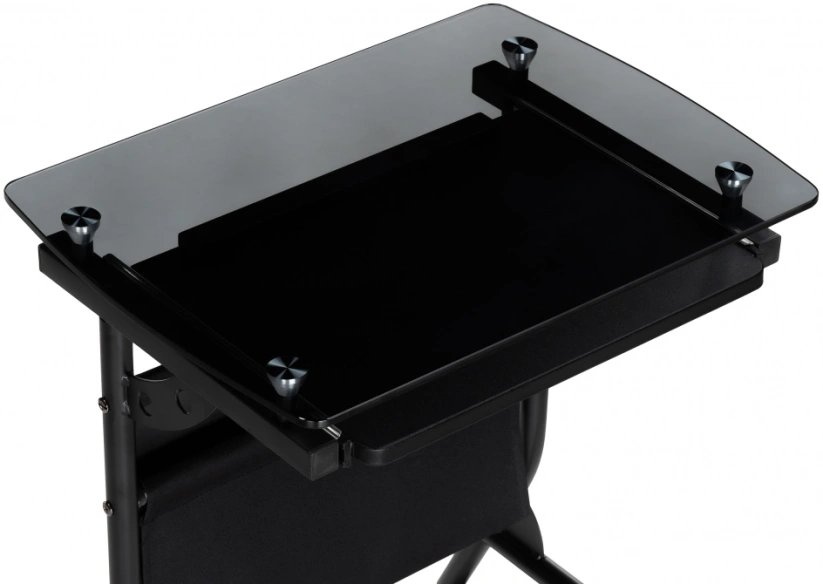 Материал каркаса - Металл; Материал ножек - Металл; Материал столешницы - Стекло; Цвет каркаса - Черный; Цвет ножек - Черный; Цвет столешницы - Черный; Цвет подстолья - Черный; Ширина - 40; Высота - 67; Длина - 54;