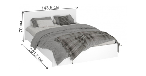 Материал каркаса - ЛДСП; Ортопедическое основание - приобретается отдельно; Цвет каркаса - Белый; Размер спального места - 140 х 200; Длина кровати - 203,2; Ширина кровати - 143,5; Высота изголовья - 70;