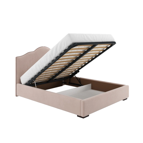 Арабеска - изящная кровать с объемным изголовьем, украшенным декоративным контрастным кантом. Объемные царги и ножная спинка. В кровати есть бельевой ящик 100*161, подъемный механизм.
