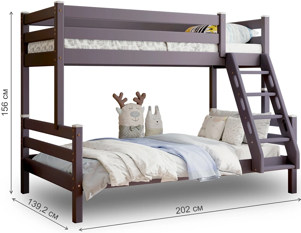 Продуманная конструкция и качественные материалы делают двухъярусную кровать Адель отличным выбором для двух детей, живущих в одной комнате. Модель оснащена бортиком безопасности и наклонной лестницей для легкого доступа к верхнему уровню.