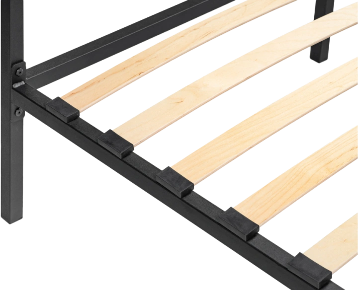 Текст о кровати Материал каркаса - Металл; Материал ножек - Металл; Ортопедическое основание - в комплекте; Материал ортопедического основания - с деревянными ламелями; Цвет каркаса - Черный; Цвет ножек - Черный; Ширина - 92; Глубина - 206; Высота - 70; Размер спального места - 90 х 200; Длина кровати - 206; Ширина кровати - 92; Высота изножья - 34;