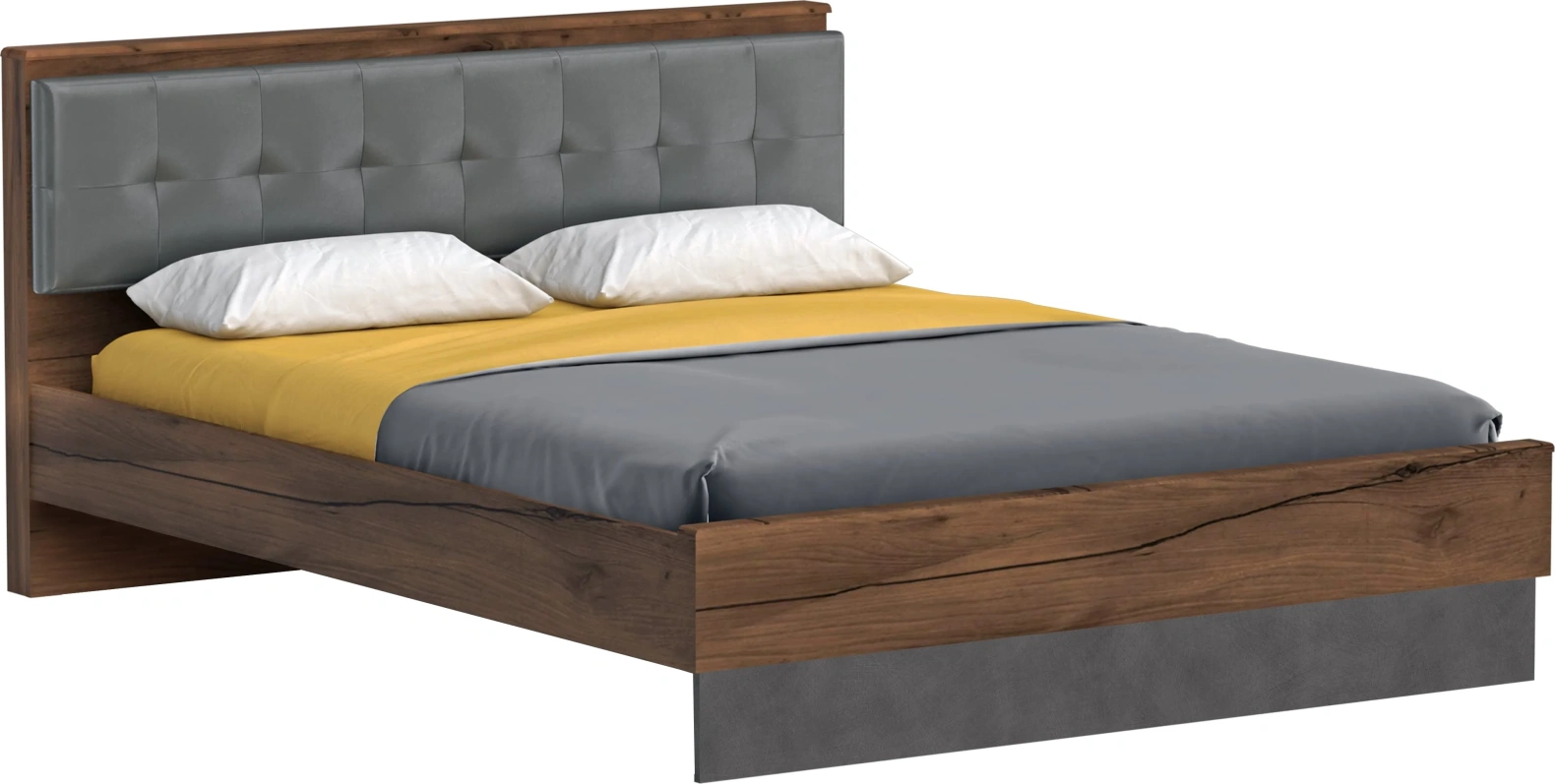 Кровать Глазго отличается повышенной комфортностью: изголовье обито мягкой экокожей в цвете "Пегас Грей" (серый), приятной на ощупь и устойчивой к истиранию.