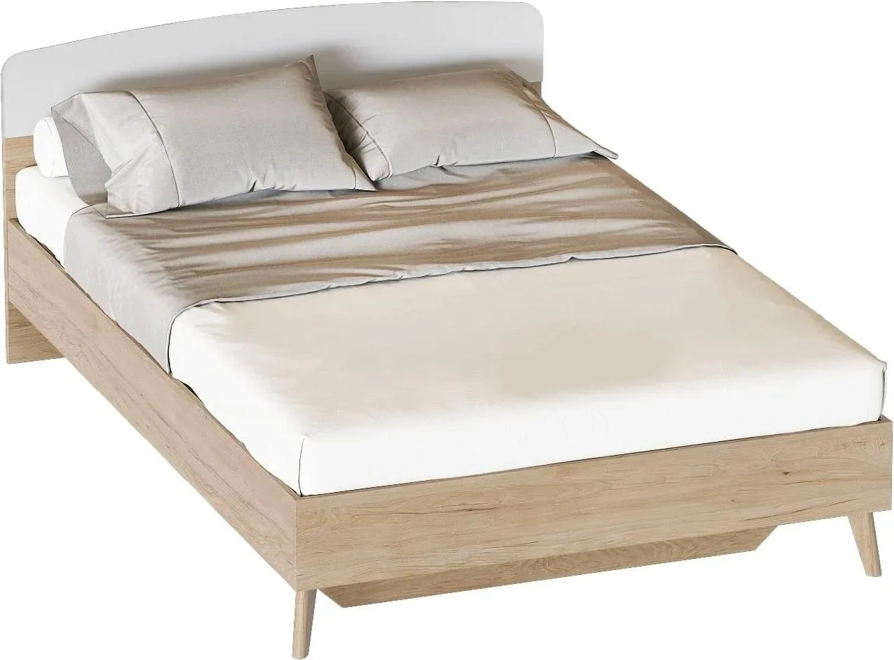 Кровать Калгари 140, полутораспальная, дуб натуральный светлый / белый матовый