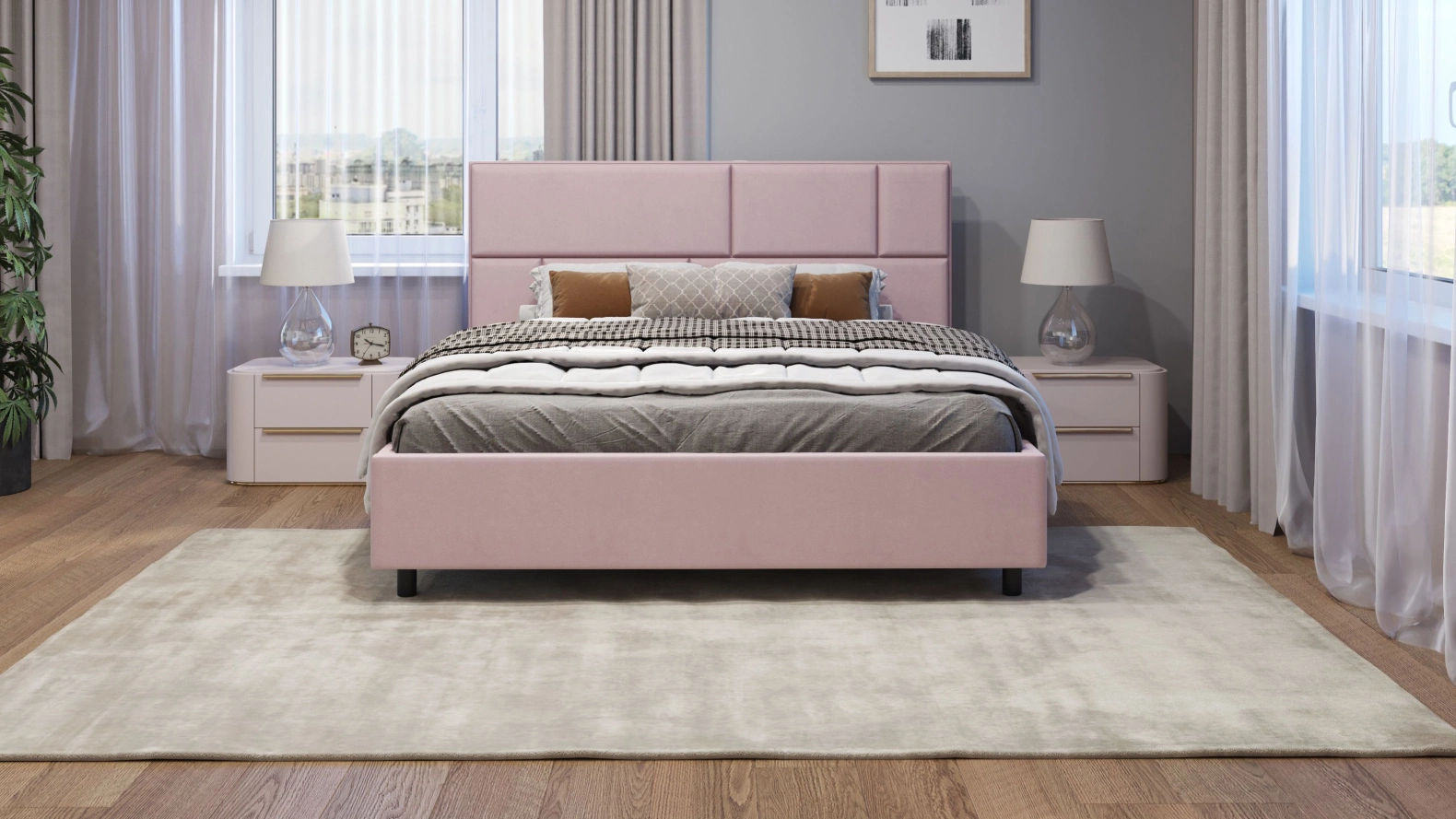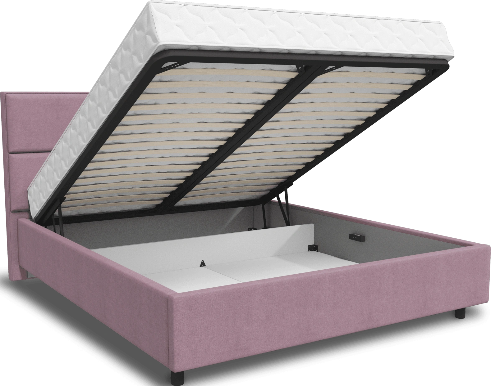 Интерьерная кровать из серии Невада с подъемным механизмом и ортопедическим основанием, а также настилом из ЛДСП для бельевого отсека. Металлическая опора 10 см.