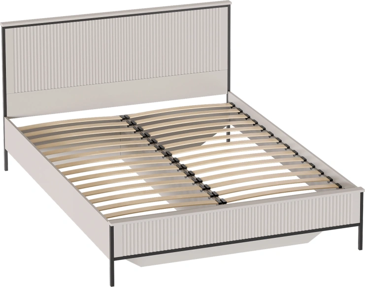 В изголовье кровати в цвете Металл Бруклин / Графит присутствует мягкий элемент, изготовленный из высококачественного велюра Velutto и ППУ. Изголовье кровати в цвете Персидский жемчуг / Персидский жемчуг выполнено из МДФ и декорировано фрезеровкой. Матрасное основание из деревянных ламелей встроено в конструкцию кровати.