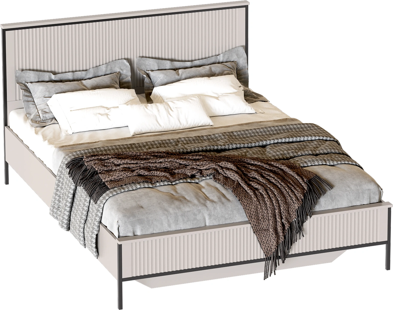 Кровать выполнена в двух вариантах исполнения: Металл Бруклин / Графит и Персидский жемчуг / Персидский жемчуг.