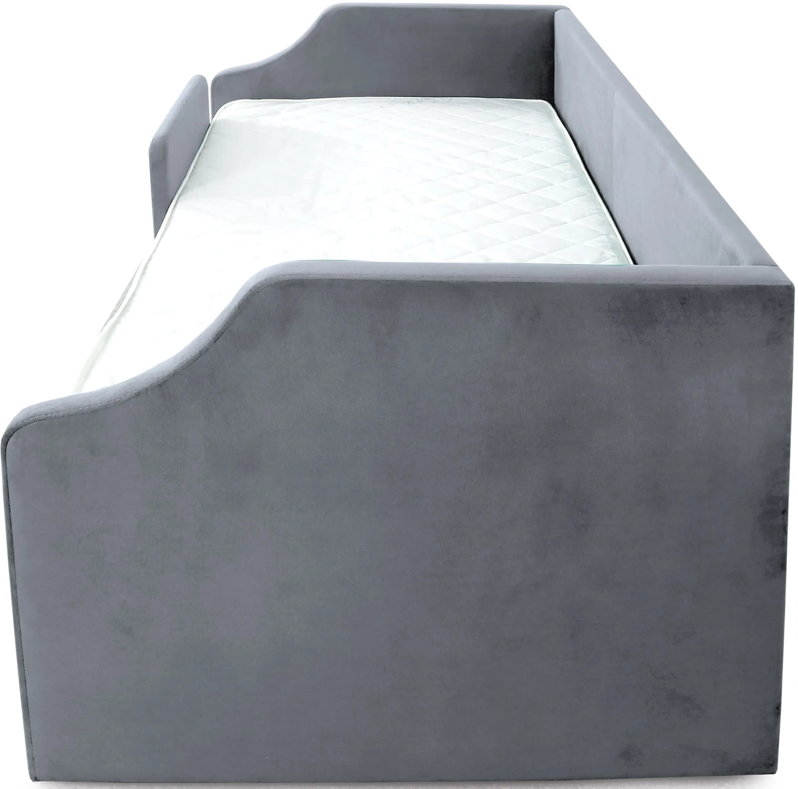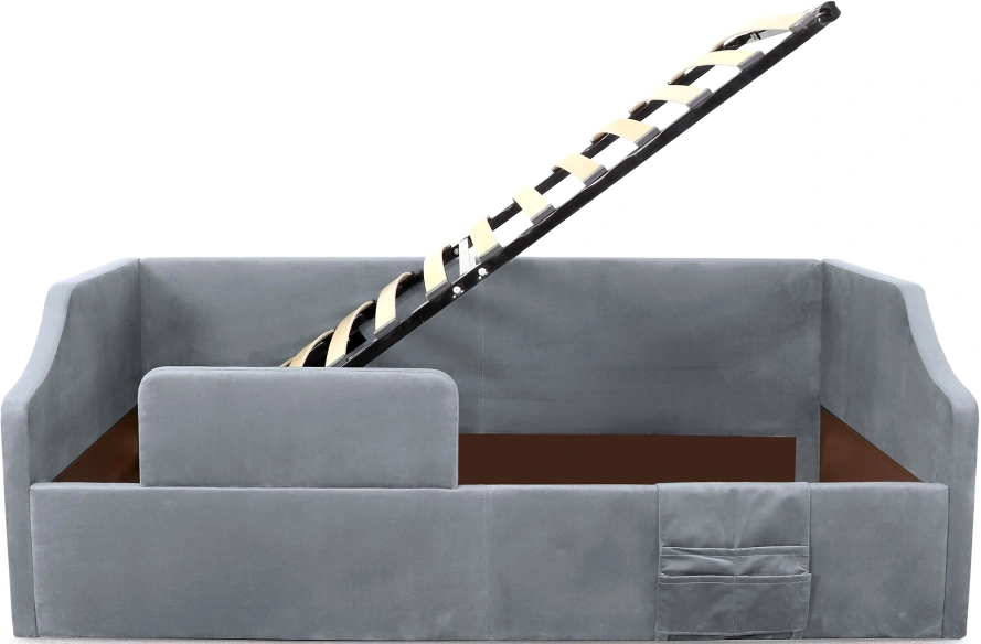 Кровать “Дрим” - это идеальное решение для детской комнаты. Мягкая обивка из приятного на ощупь, гипоаллергенного велюра обеспечивает комфорт и уют во время сна.