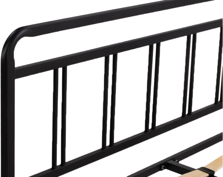 Материал каркаса - Металл; Материал ножек - Металл; Ортопедическое основание - в комплекте; Материал ортопедического основания - с деревянными ламелями; Цвет каркаса - Черный; Цвет ножек - Черный; Ширина - 143; Глубина - 206; Высота - 90,3; Размер спального места - 140 х 200; Длина кровати - 206; Ширина кровати - 143; Высота изножья - 46,3; Высота изголовья - 90,3;