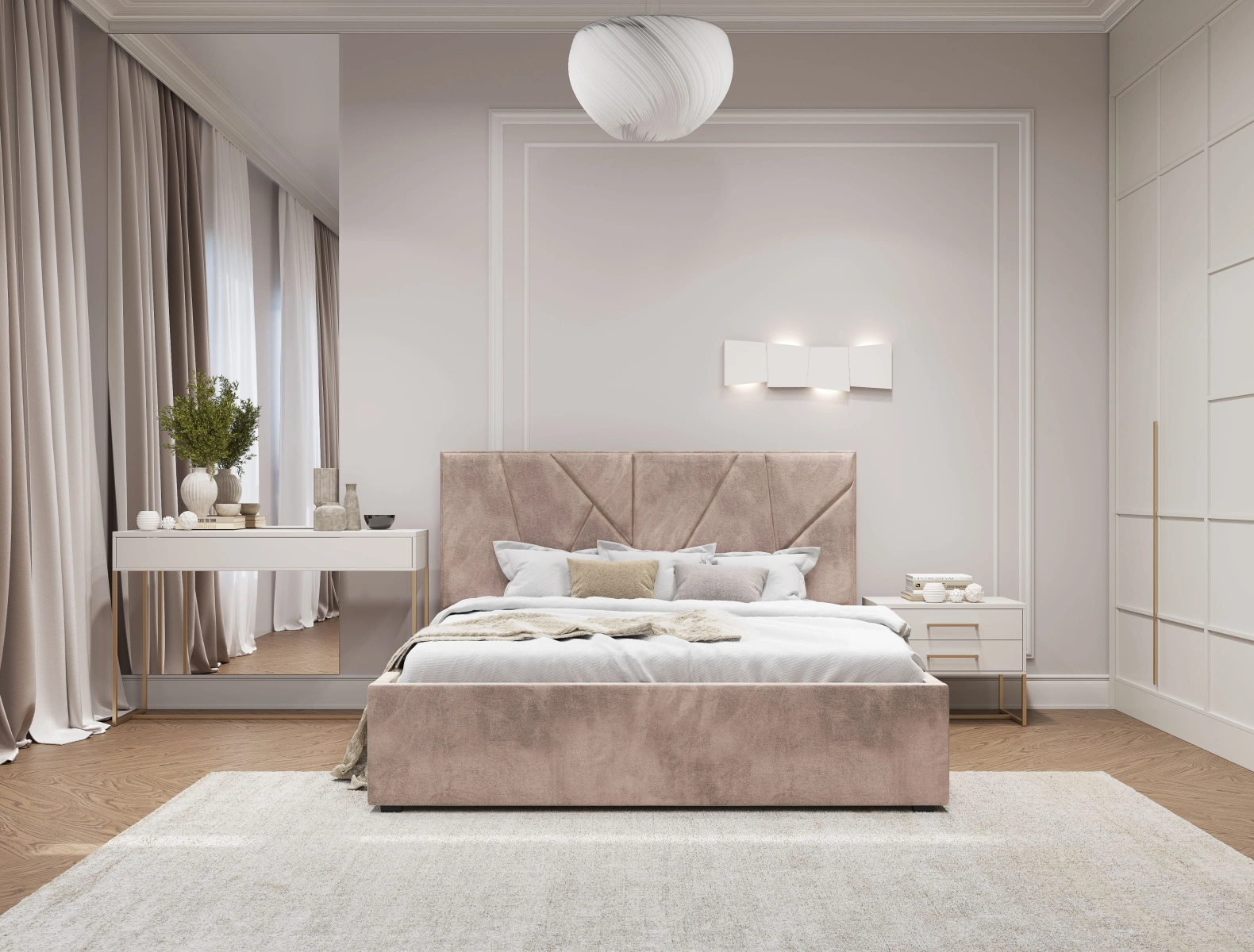 Интерьерная кровать из серии Рица без подъемного механизма с ортопедическим основанием. Пластиковая опора 2,80 см.