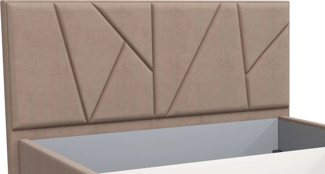 Интерьерная кровать из серии Рица с подъемным механизмом и ортопедическим основанием, а также настилом из ЛДСП для бельевого отсека. Металлическая опора 10 см.