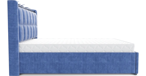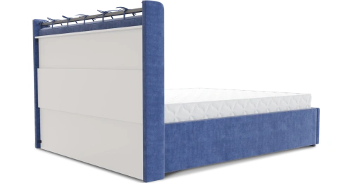 Интерьерная кровать из серии Женева с подъемным механизмом и цельносварным ортопедическим основанием, а также настилом из ЛДСП для бельевого отсека.