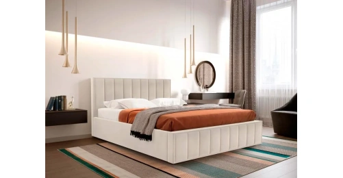 Кровать в мягкой обивке “Женева” является воплощением элегантной изысканности.