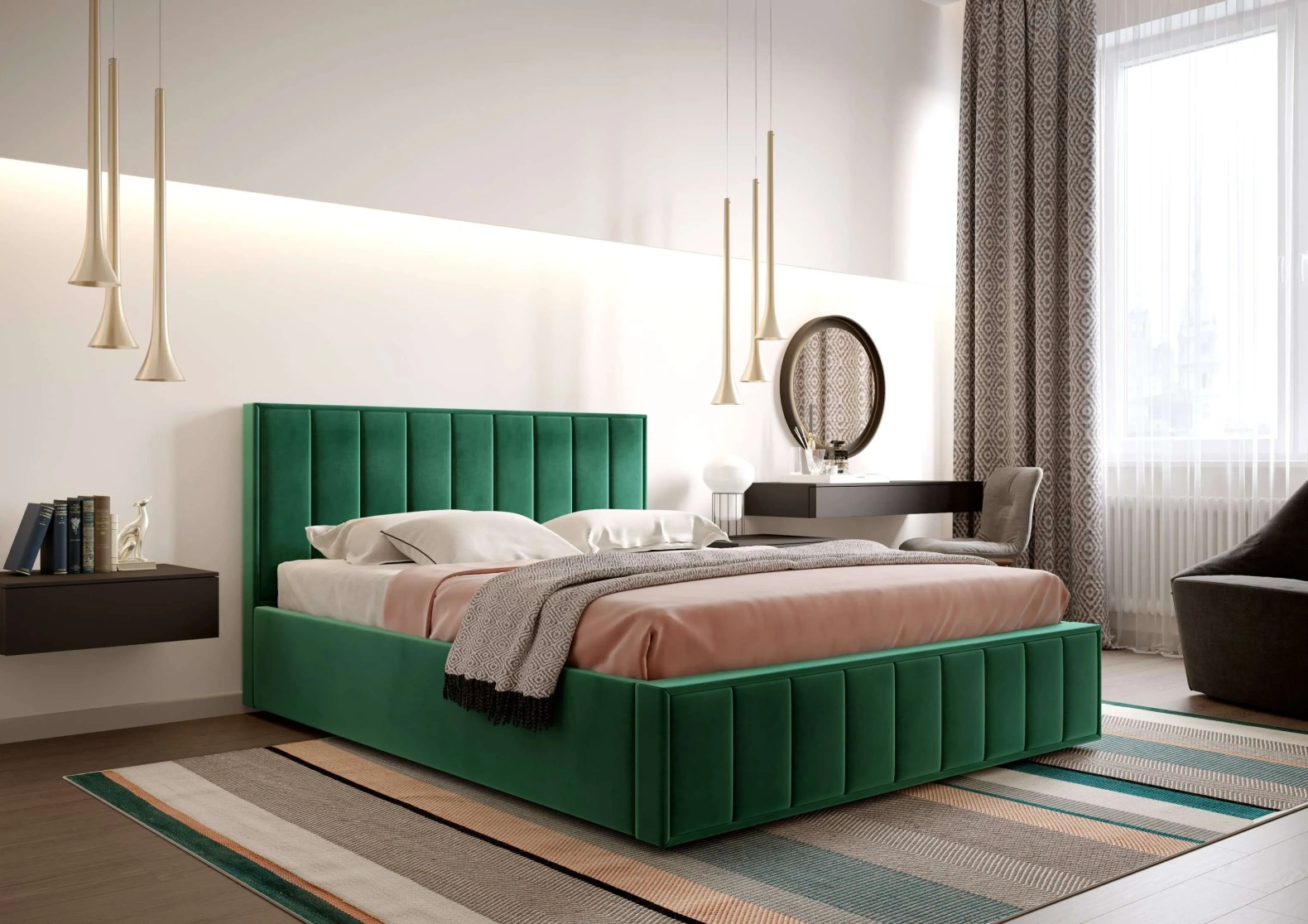 Кровать Чикаго 180, двуспальная, мягкая, аликанте изумруд