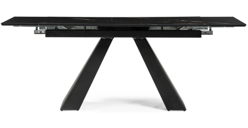 Стол прямоугольной формы, что является наиболее универсальным выбором для столов. С помощью механизма слайдер, стол может раскладываться, что делает его удобным для использования как для небольших семейных ужинов, так и для больших компаний.
