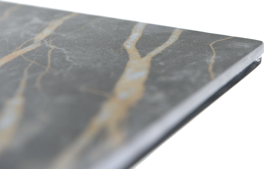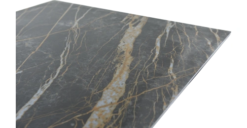 Кухонный стол «Como» со столешницей из искусственного камня, материал - керамогранит Noir desir Bocciardato, на черных металлических опорах. Отличительной чертой этого стола являются изогнутые ножки и синхронный механизм для раскладки стола с подъемным механизмом. Такой механизм успешно себя зарекомендовал и пользуется постоянным спросом у наших покупателей. Стоит отметить еще одну особенность стола «Como» — это выбор, как со столешницей из керамогранита, так и покрытия из закаленного, матового стекла OPTI.