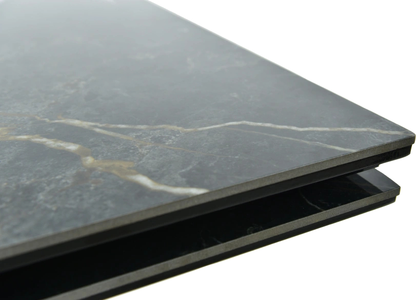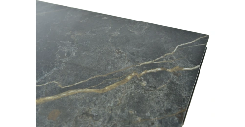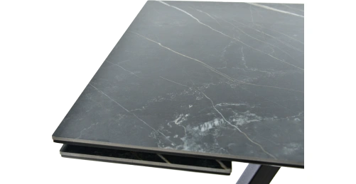 Кухонный стол «Monaco» со столешницей из искусственного камня, материал - керамогранит Noir Desir Bocciardato, на черных металлических опорах. Отличительной чертой этого стола являются боковые вставки для раскладки стола. Такой механизм успешно себя зарекомендовал и пользуется постоянным спросом у наших покупателей. Стоит отметить еще одну особенность стола «Monaco» — это выбор, как со столешницей из керамогранита, так и покрытия из закаленного, матового стекла OPTI. На столы с керамикой, между столешницей и вставкой, приклеивается силиконовая полоска, она необходима для сохранения целостности керамики при трансформации стола.
