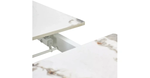 - вставка 50 см выдвигается с торца вместе с ножками со встроенными колесами, не царапающими пол, что позволяет быстро и легко увеличить длину столешницы до 170 см;