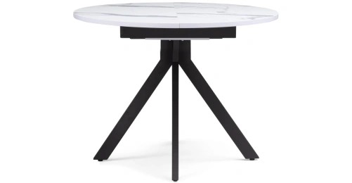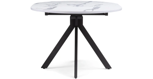 Толщина столешницы: 2,5 см. Материал каркаса - Металл; Материал ножек - Металл; Материал столешницы - ЛДСП; Цвет каркаса - Черный; Цвет ножек - Черный; Цвет столешницы - Белый мрамор; Цвет подстолья - Белый мрамор; Ширина - 100; Высота - 75; Длина стола в разложенном виде - 130; Длина - 100;