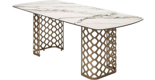 Стол дизайнерский CHIAVARI 220 с матовой керамической столешницей контрастный мрамор