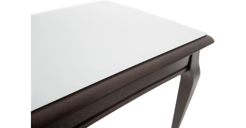 Обеденный, раздвижной стол «Кабриоль Glass», стекло белое, крашение стола Тон 7(орех темный), от производителя Димитровградской мебельной фабрики «Аврора» (Россия).