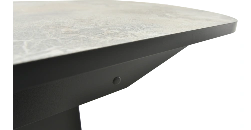 Отличительной чертой этого стола является одна опора, выполненная из МДФ в цвете подстолья. К опоре крепится непосредственно столешница. Стол раздвижной, механизм раскладки — бабочка, причем покрытие вкладыша так же изготовлено из пластика, что позволяет столу не терять эстетической окраски даже в разложенном варианте. Стоит отметить еще одну особенность стола «Корсика» — это выбор покрытия.