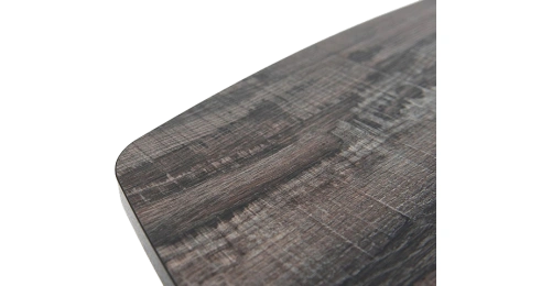 Кухонный стол «Милан» ПМ со столешницей из премиум пластика, цвета «Дерево темное» с черными опорами. Стол раздвижной, механизм раскладки — синхронный с подъемным механизмом, причем покрытие вкладыша так же изготовлено из пластика, что позволяет столу не терять эстетический вид даже в разложенном варианте.