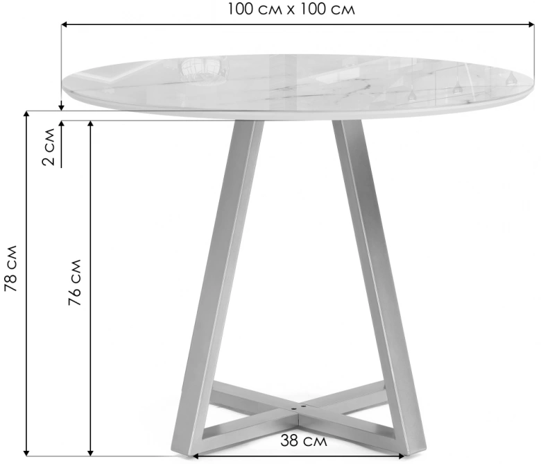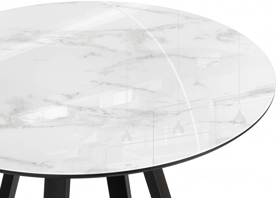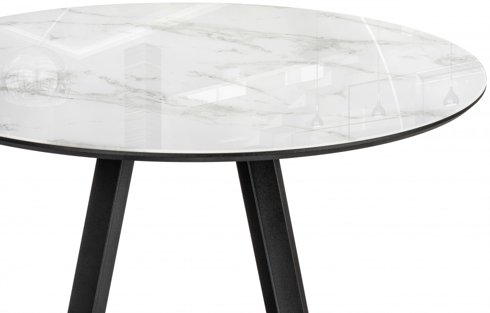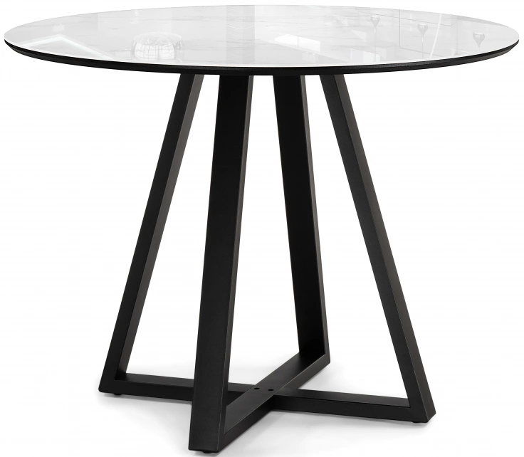 Толщина столешницы: 2 мм. Материал каркаса - Металл; Материал ножек - Металл; Материал столешницы - Стекло / МДФ; Цвет каркаса - Черный; Цвет ножек - Черный; Цвет столешницы - Белый; Цвет подстолья - Черный; Ширина - 100; Высота - 78; Длина - 100;
