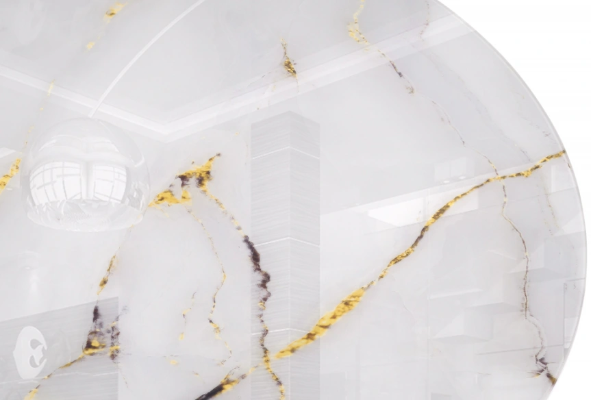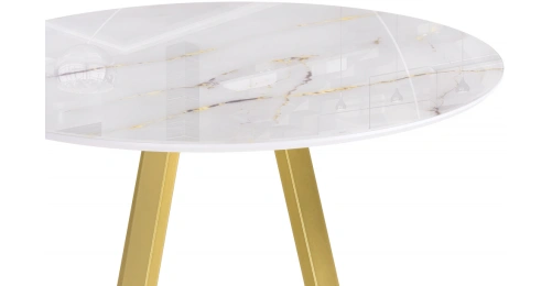 Толщина столешницы: 2 мм. Материал каркаса - Металл; Материал ножек - Металл; Материал столешницы - Стекло / МДФ; Цвет каркаса - Золотой; Цвет ножек - Золотой; Цвет столешницы - Белый; Цвет подстолья - Белый; Ширина - 100; Высота - 78; Длина - 100;
