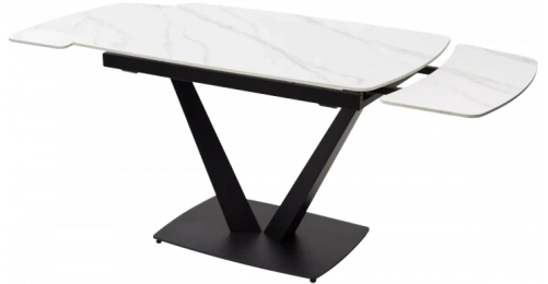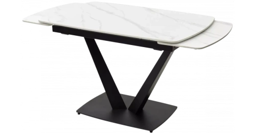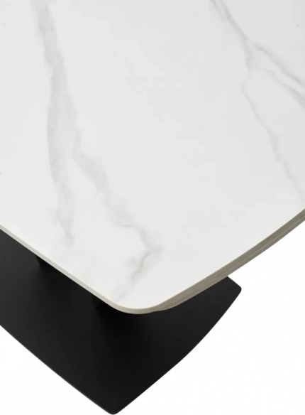 Стол ALATRI 120 с матовой керамической столешницей белый мрамор, черный каркас.