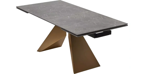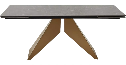 Стол дизайнерский ALES 180 с глянцевой керамической столешницей черный мрамор, каркас бронза.