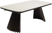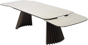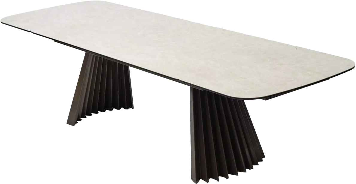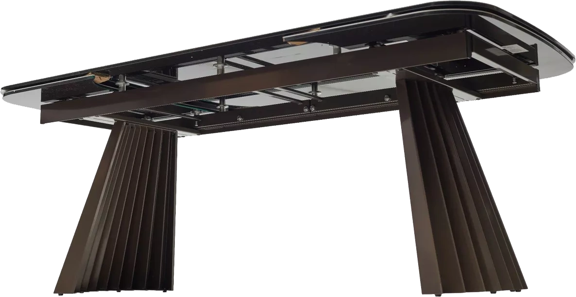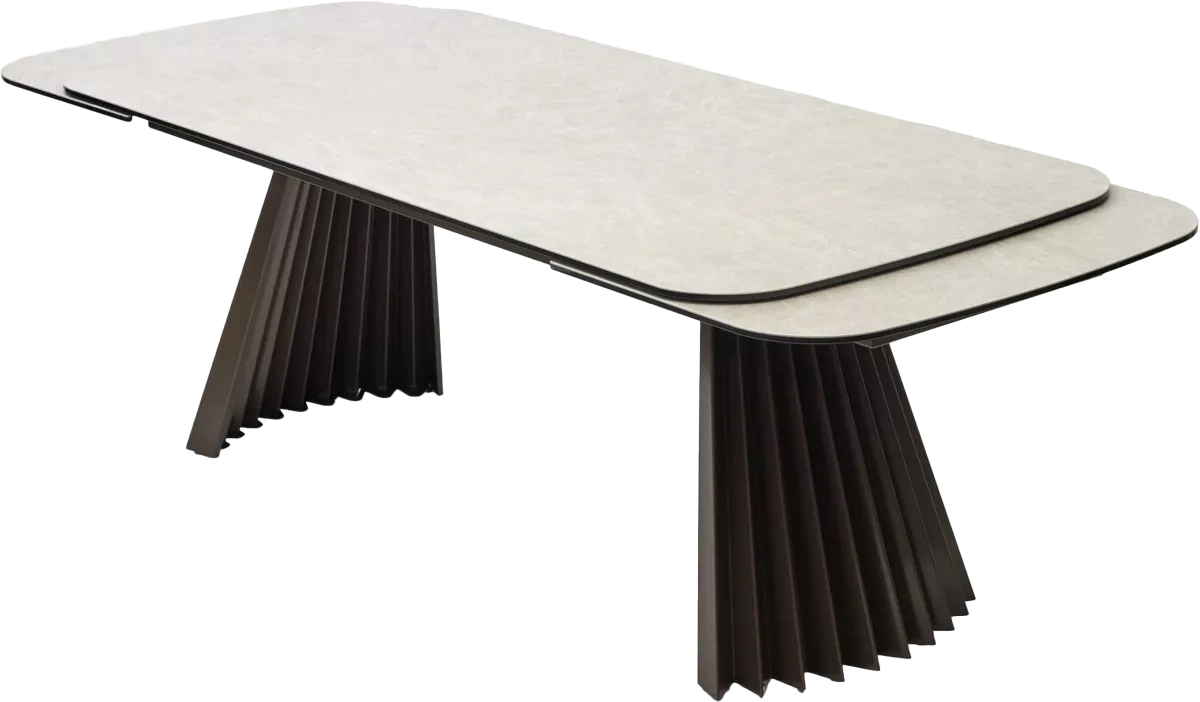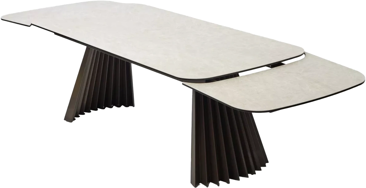 - двухсторонняя торцевая система раскладывания, две независимые вставки по 50 см позволяют увеличить длину столешницы на 250 см и 300 см при необходимости;