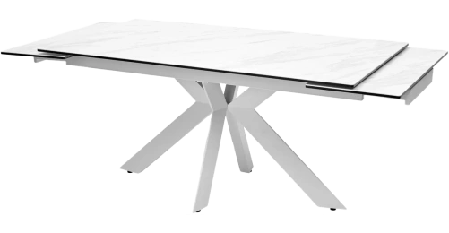 Стол BELLUNO 160 с матовой керамической столешницей белый мрамор, белый каркас.