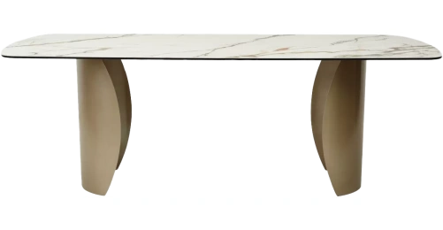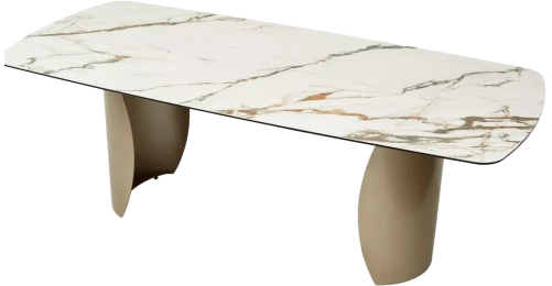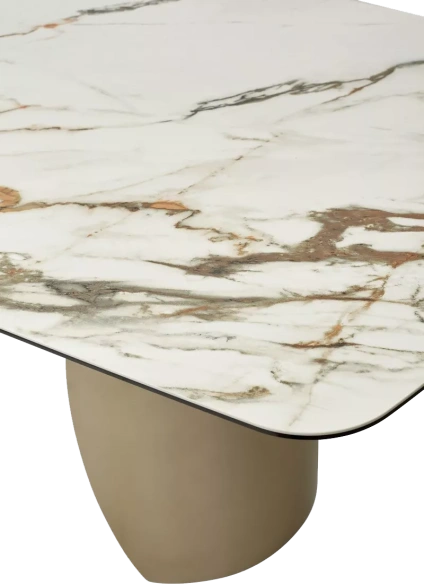 Стол дизайнерский BRONTE 220 с матовой керамической столешницей контрастный мрамор, каркас шампань