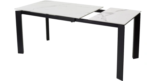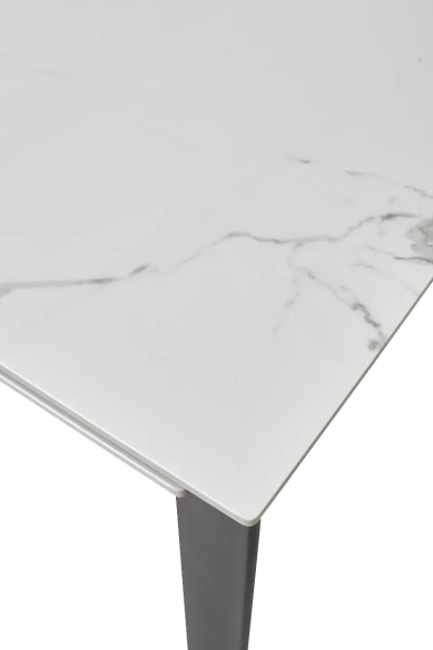 Стол CORNER 120 с керамической столешницей белый мрамор на черном каркасе