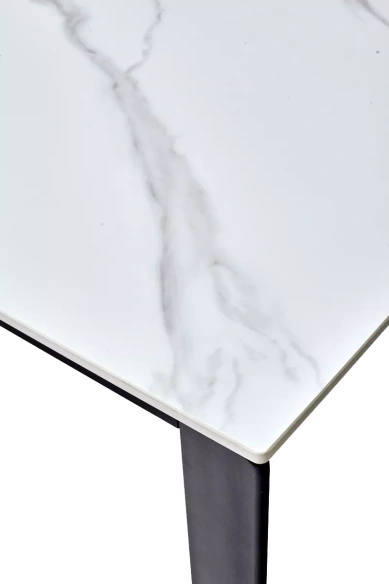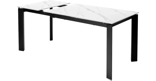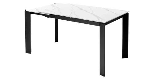 Стол CORNER 120 монолитная матовая керамика в цвете белый мрамор на черном каркасе