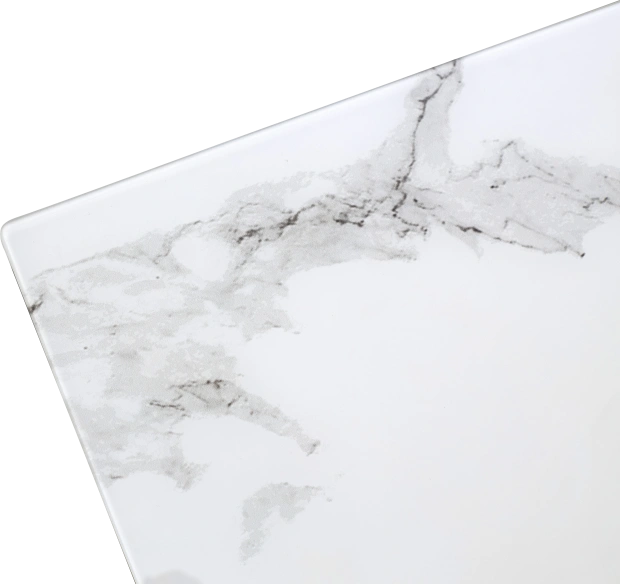 Стол Кентукки 3 белый мрамор со стеклянной столешницей черный каркас