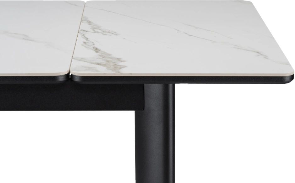 Кухонный стол раздвижной Кина, 90(130), керамика, alpine white, каркас черный