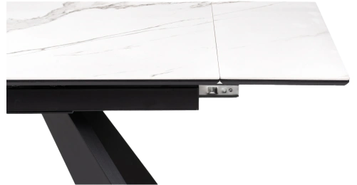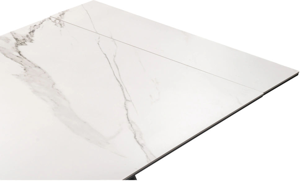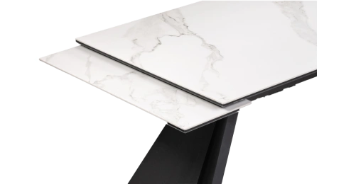 Кухонный стол раздвижной Ливи, 140(200), керамика, белый мрамор, каркас черный