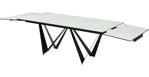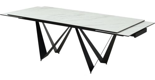- двухсторонняя торцевая система раскладывания, две независимые вставки по 50 см позволяют увеличить длину столешницы на 250 или 300 см при необходимости;