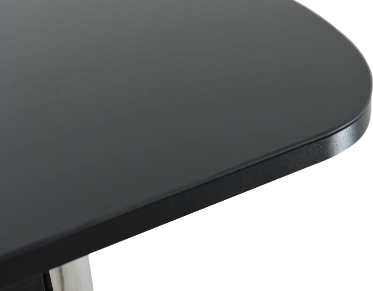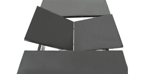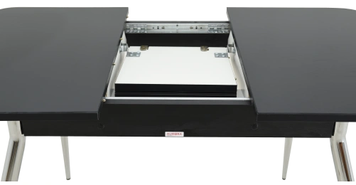 Кухонный стол Ривьера СВ со стеклянной столешницей черного цвета и каркас хром, вставкой «бабочка», также дублирующей стеклянную столешницу.